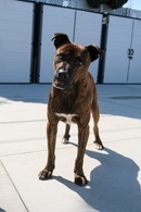 Milo is a 9-month-old Weimaraner–Great Dane mix who came to us as a stray. He is a sweet, energetic boy who would do best in an active household and would benefit from continued training. Because he is still young and learning, we recommend a meet and greet to see how he does with other dogs.
